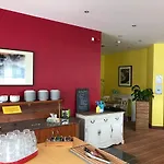 Moderne sted med gratis parkering, så tøv ikke med at komme her i bil. Lydløst og meget hyggeligt værelse, helt fint morgenmad.